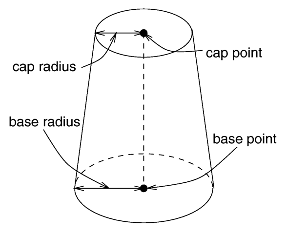 <Base_Point>, Base_Radius, <Cap_Point>, Cap_Radius