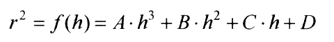 with radius r and height h. Since this is a cubic function in h it has enough flexibility to allow smooth curves.
