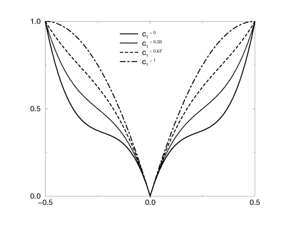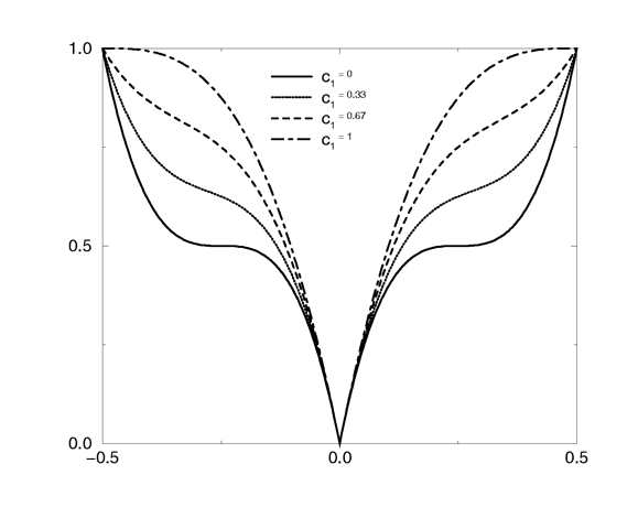 This straight slope can be made to curve by adjusting the two control values. The control values adjust the slope at the top and bottom of the curve. A control values of 0 at both ends will give a linear slope, as shown above, yielding a hard edge. A control value of 1 at both ends will give an "s" shaped curve, resulting in a softer, more rounded edge.