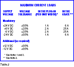 The voltage tolerances and current loadings are specified in Table 2. The specified tolerances in voltage refer to the voltage measured at the contacts of the DATAWAY sockets and must be maintained under the worst combination of factors such as AC mains voltage and frequency, the maximum current loadings, temperature and the position in the crate of the socket under observation.
